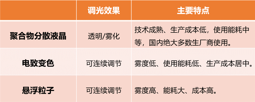 電控調光玻璃主要分為聚合物分散液晶(PDLC)、電致變色(EC)和懸浮粒子(SPD)。