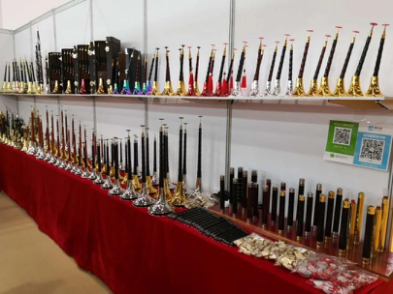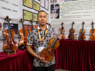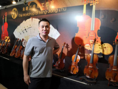 因為疫情原因,今年的廣州樂器展提琴展館幾乎見不到外商。參展商雖然少于往年,但賣提琴配件和提琴木材的也有不少。廣州作為提琴制作重鎮,許多提琴廠家或提琴工作室每年都會前來參加開在家門口的樂器展會。記者看到了廣州劍膽琴心樂器有限公司、廣州越秀區華興樂器行、廣州晏林提琴工作室、廣州華聲樂器廠、廣州一帆樂器等廣州當地的一些樂器展商。廣州劍膽琴心樂器有限公司是國際提琴制作大師朱明江創辦的提琴公司,朱明江大師幾年前英年早逝,這家公司依然運行著。掌門人朱衛憲表示:我們公司每年都會參加廣州展和上海展,因為參加樂器展會,為我們提供了學習和宣傳自己品牌的機會。他說在疫情期間,我們的樂器出口沒有受到太大影響。