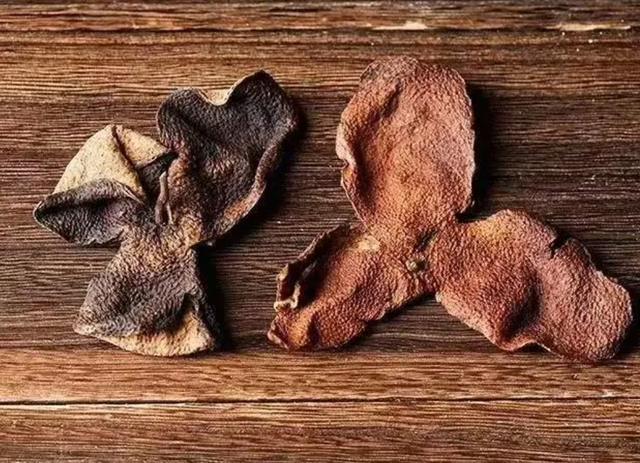 3.通過聞、品味道判斷——陳皮的香氣滋味由年份低到高的變化趨勢是:辛、澀、痹、雜刺激——甘、香、醇、陳。不符合這個規(guī)律的,往往就是拔高了年份;比如,一份標示20年的陳皮,卻表現(xiàn)出柑味,或辛、澀、痹、雜、刺激的特點,基本可以認為是假年份。